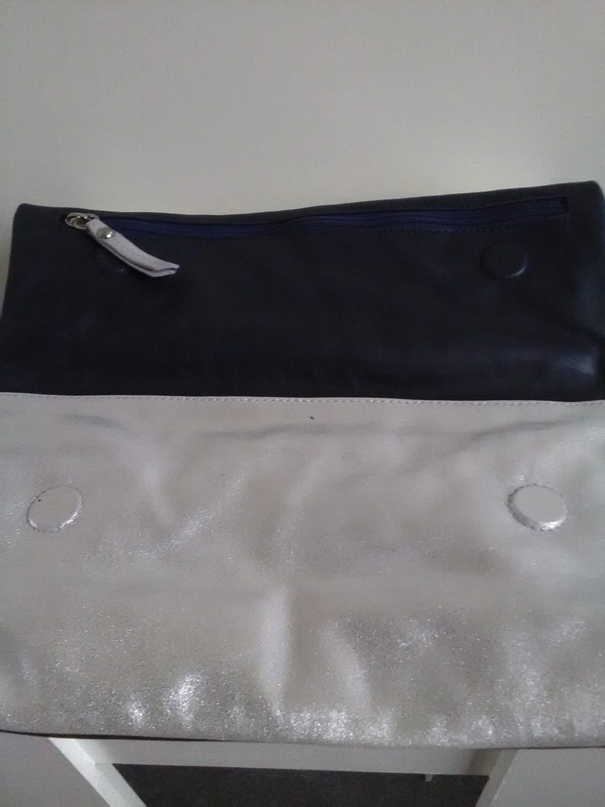 Clutch navy/silver: {brand Windsister} , unique soft leather purse,with big zipper compartment. No shoulderstrap.