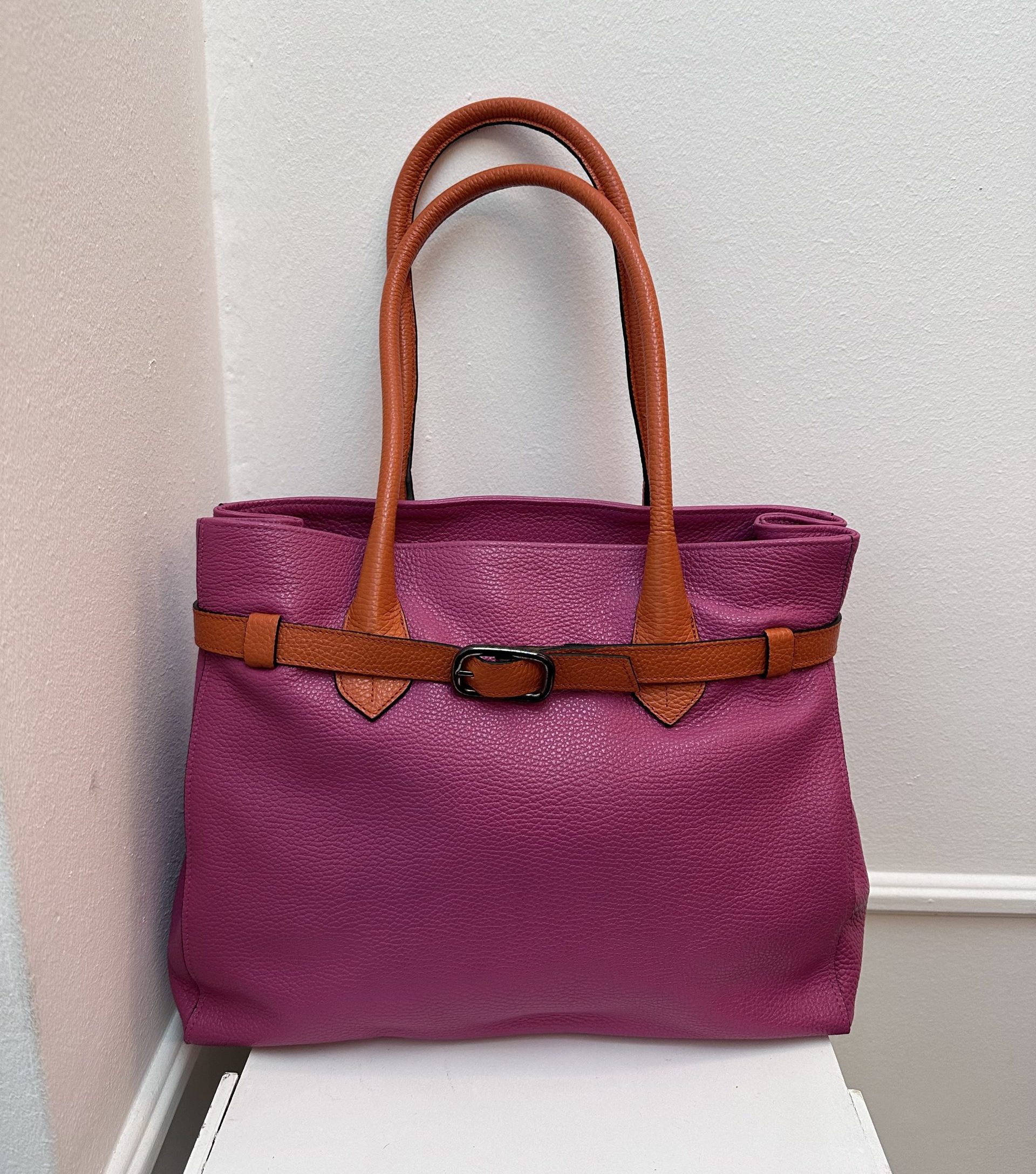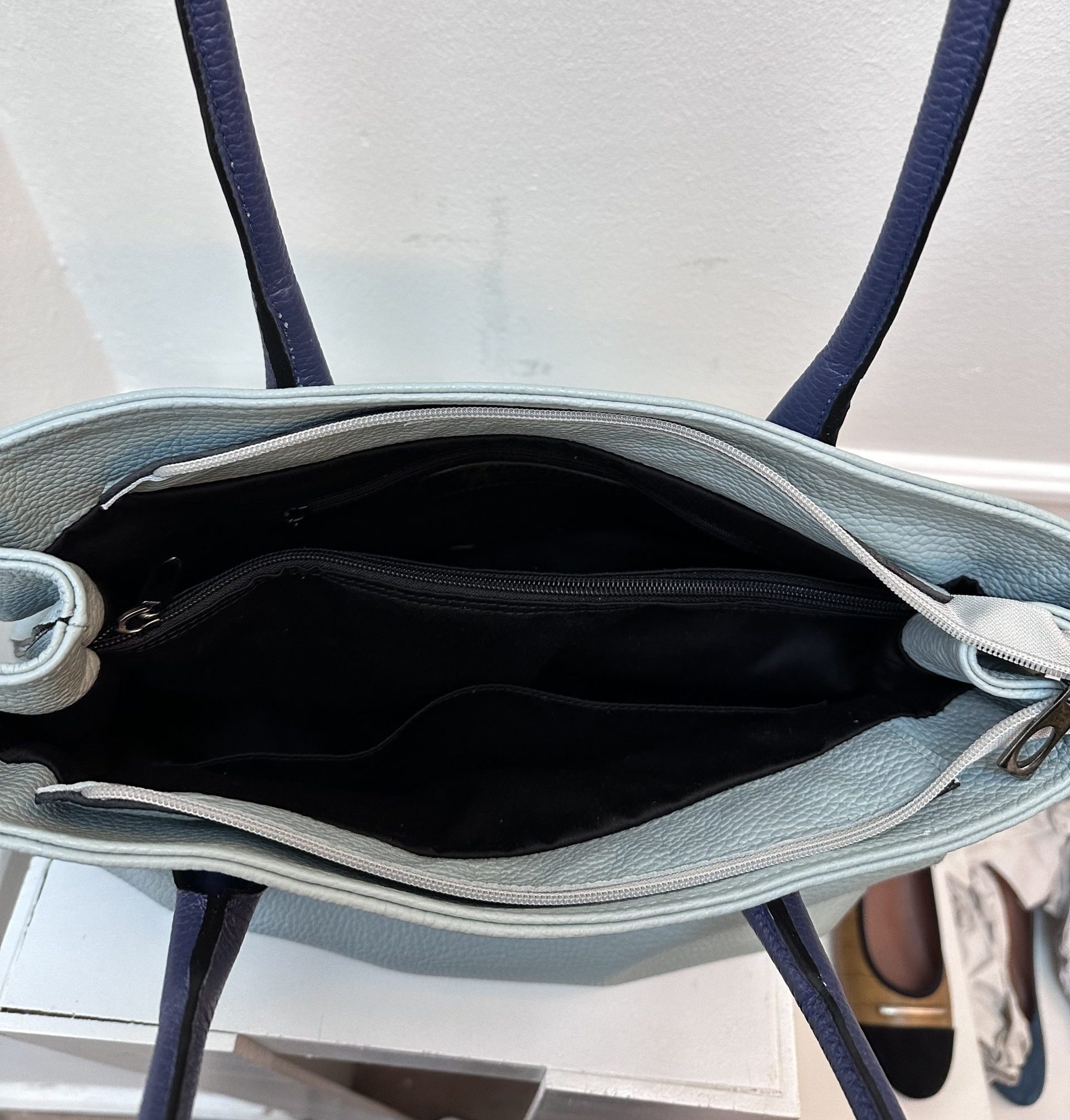 The bag has leather shoulder straps which are long enough to wear over your shoulder, even while wearing a winter coat.